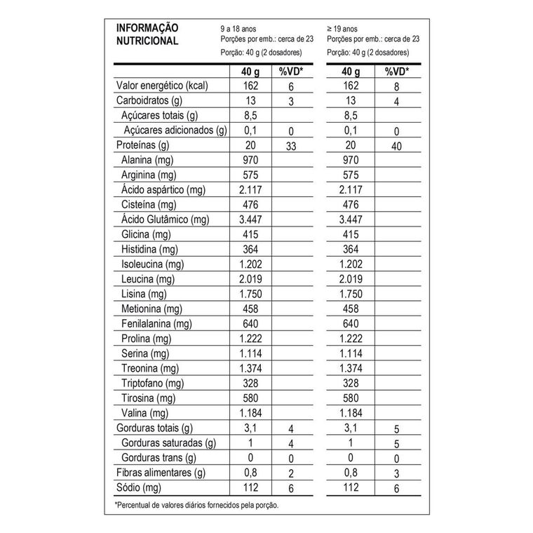Modo de preparo para o shake: Para o preparo de uma porção, misture 40g (2 dosadores cheios*) do produto em 200mL (1 copo) de água ou outra bebida de sua preferência (leite integral ou desnatado, por exemplo) com o auxílio de um liquidificador ou coqueteleira.