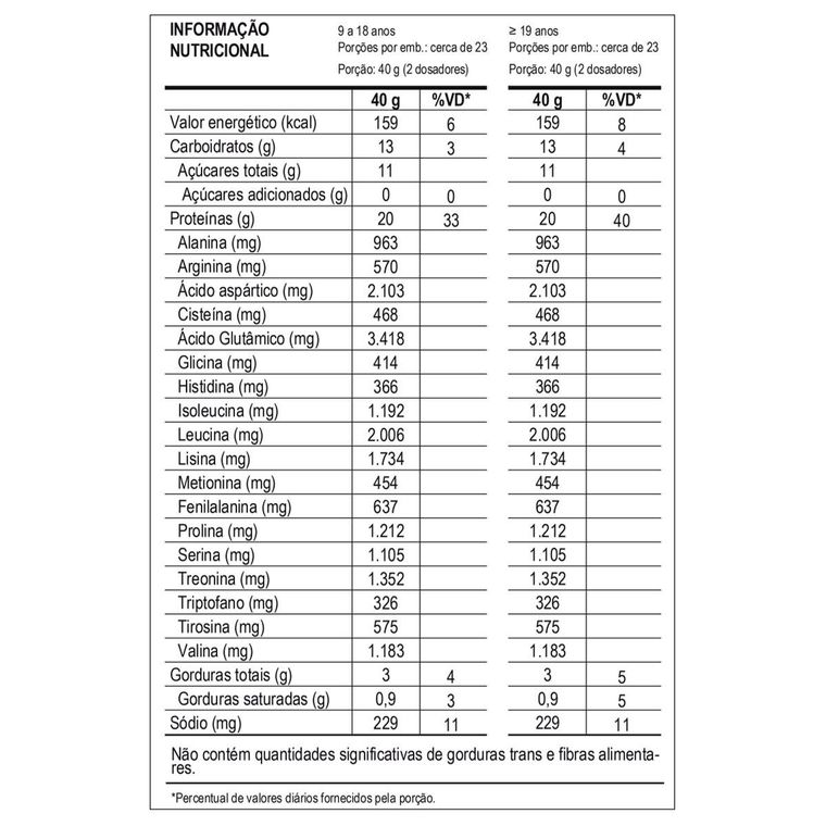 Modo de preparo para o shake: Para o preparo de uma porção, misture 40g (2 dosadores cheios*) do produto em 200mL (1 copo) de água ou outra bebida de sua preferência (leite integral ou desnatado, por exemplo) com o auxílio de um liquidificador ou coqueteleira.