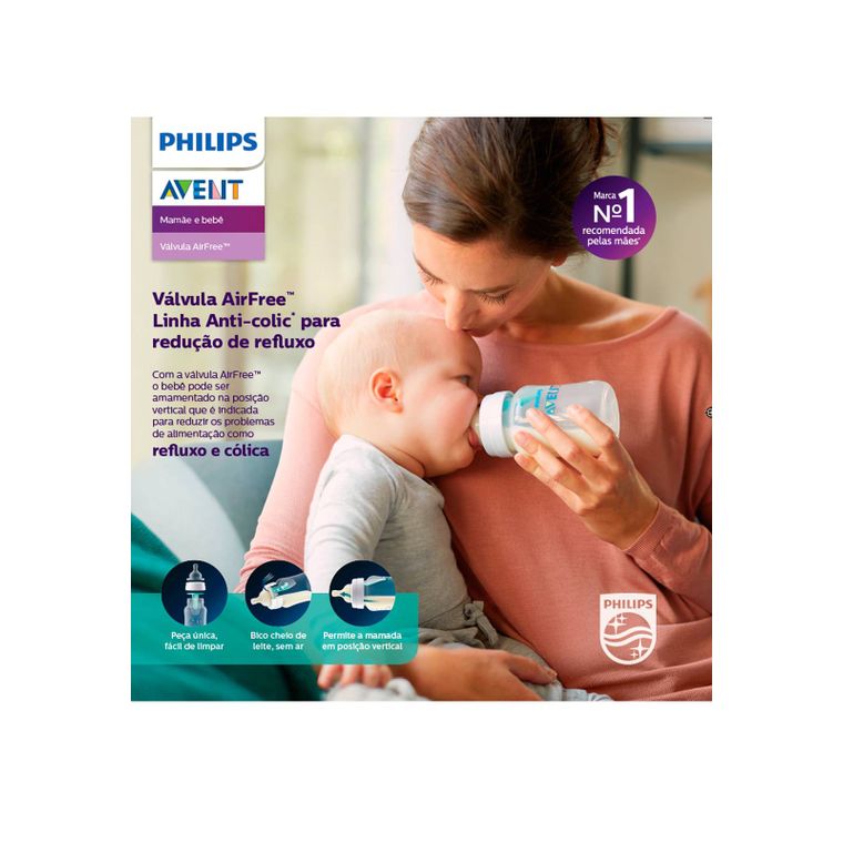 DESENVOLVIDA PARA MENOR ENTRADA DE AR: A nossa válvula única AirFree™ afasta o ar do bico da mamadeira, permitindo que o bebé engula menos ar enquanto bebe. Isto pode ajudar a reduzir problemas de alimentação comuns, tais como cólicas, refluxo e gases.