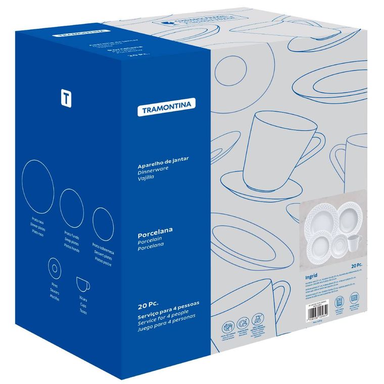 APARELHO DE JANTAR TRAMONTINA INGRID EM PORCELANA BRANCO 20 PEÇAS