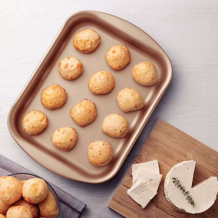 Corpo de alumínio com espessura de 0,8 mm que proporciona cozimento rápido e uniforme.