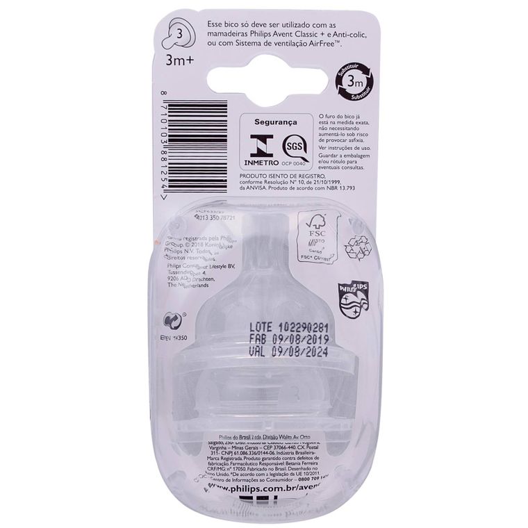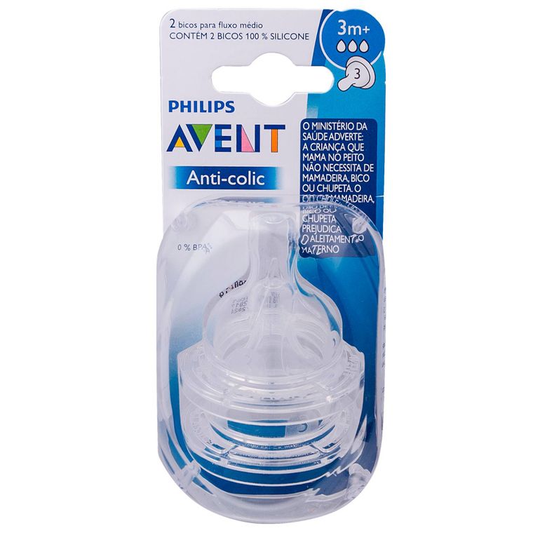 BICO MAMADEIRA AVENT CLASSIC ANTI-COLIC Nº 3 - 3m + - 2 UNID. EM SILICONE 0% BPA - PHILIPS AVENT
