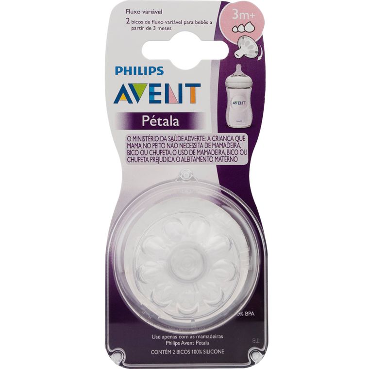 BICO MAMADEIRA AVENT PÉTALA Nº 3 - 3m + - 2 UNID. EM SILICONE 0% BPA - PHILIPS AVENT