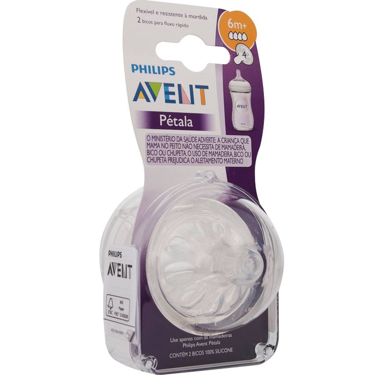 BICO MAMADEIRA AVENT PÉTALA Nº 4 - 6m + - 2 UNID. EM SILICONE 0% BPA - PHILIPS AVENT