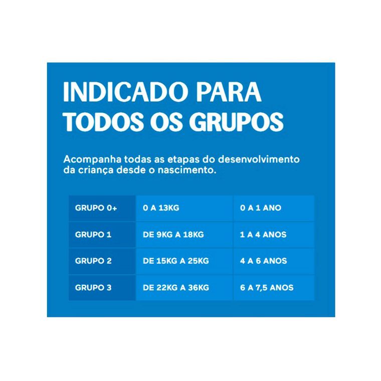 - PARA O GRUPO 0+ (ATÉ 13KG): A CADEIRA DEVE SER INSTALADA VOLTADA PARA TRÁS SOMENTE NO BANCO DE TRÁS DO AUTOMÓVEL E A CRIANÇA DEVE SEMPRE ESTAR PRESA PELO CINTO DA CADEIRINHA E ESTA PELO CINTO DO AUTOMÓVEL.