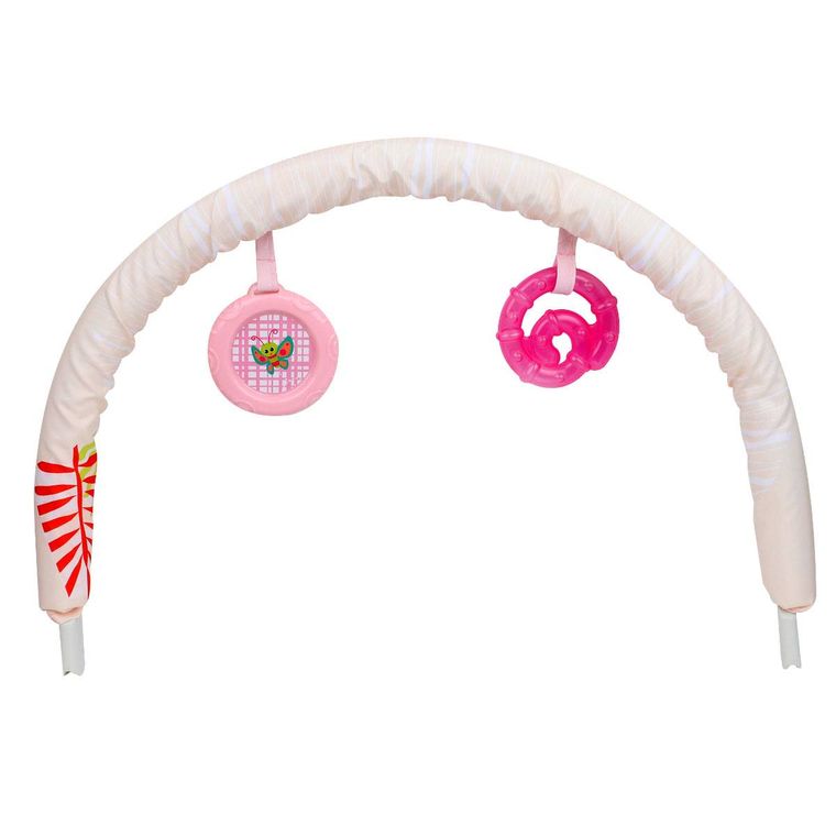 Cadeira com mobile removível que contém 1 brinquedo e 1 espelho. Tecido lavável e estampado. Pilhas não inclusas. Descontinuar o uso quando o bebê começar a sentar sozinho. Cadeira não reclinável.