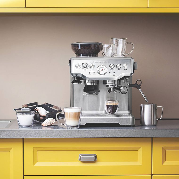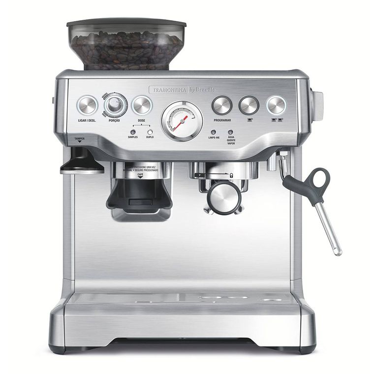 Agora o seu ritual do café irá tornar-se ainda mais saboroso e extraordinário.Com a Cafeteira Tramontina Express Pro em Aço Inox com Moedor 2 L 127 V da linha de Eletroportáteis Tramontina by Breville, você terá uma experiência completa, podendo selecionar os grãos de acordo com seu gosto, moer, dosar, extrair e apreciar as notas e aromas únicos de um bom café. A cafeteira irá possibilitar para o seu dia a dia um funil grande de 250 g para grãos, para até 25 doses de café espresso fresco. Moagem com espessura ajustável, com 18 configurações, do mais grosso ao mais fino, para uma extração ideal do café. Compartimento de moagem sem o uso das mãos. Bandeja coletora removível com separador de café úmido ou seco. Tanque removível de água de 2 L com abastecimento superior. Bandeja de aquecimento para 6 xícaras. Controle volumétrico, 1 e 2 xícaras, programável pelo usuário. Controle ajustável de temperatura para extrair o sabor e o aroma ideal do café. Extração automática para uma extração ideal do espresso. Água quente instantânea. Comece o dia do melhor jeito possível, saboreando um delicioso café.