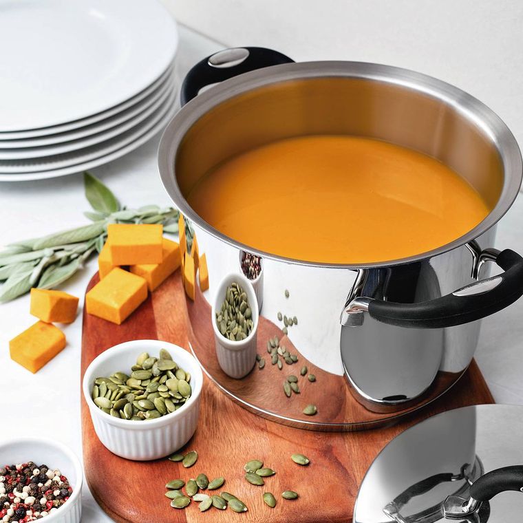 - Economiza tempo e energia: o segredo está no fundo triplo (aço inox + alumínio + aço inox), que distribui o calor uniformemente, proporcionando um cozimento mais rápido. Por isso, você pode manter o fogo baixo durante todo o preparo e, assim, poupar energia.