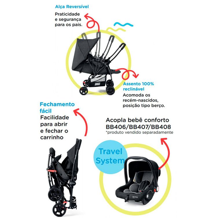 · Acopla bebê conforto BB406/BB407/BB408 **PRODUTO VENDIDO SEPARADAMENTE**