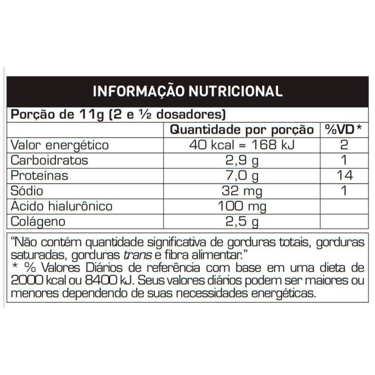 - 100mg de ácido hialurônico por porção