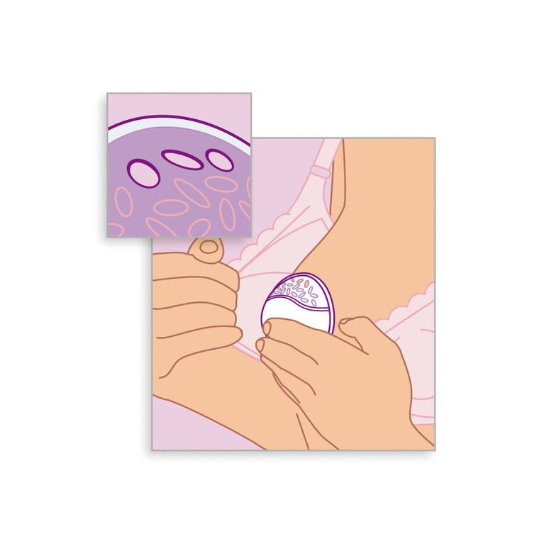 Conforto e proteção. Conchas ultra-confortáveis para seios. As conchas ultra-macias para seios são usadas sob o sutiã para proteger os mamilos contra rachaduras e coletar o leite materno que estiver vazando.