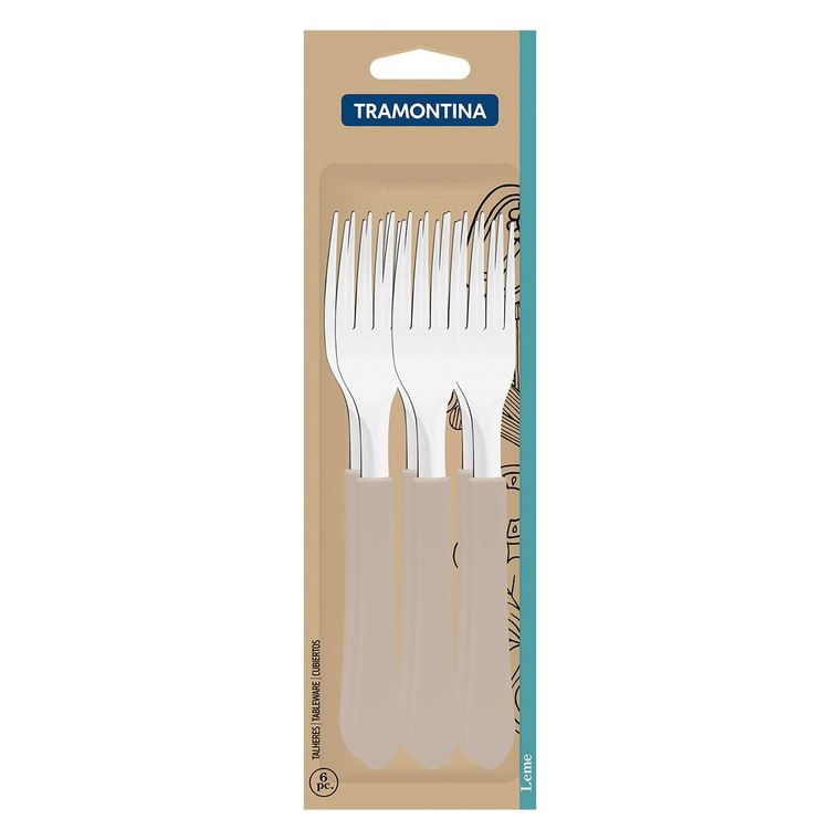 CONJUNTO DE GARFOS DE MESA TRAMONTINA LEME COM LÂMINAS EM AÇO INOX E CABOS DE POLIPROPILENO CINZA 6 PÇS