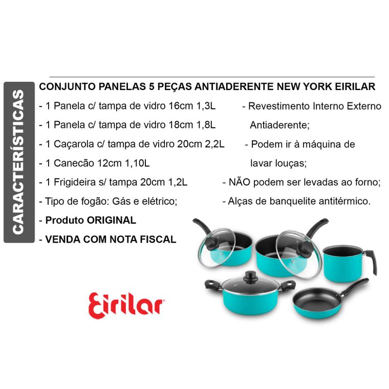 CONJUNTO PANELAS 5 PEÇAS ANTIADERENTE NEW YORK EIRILAR