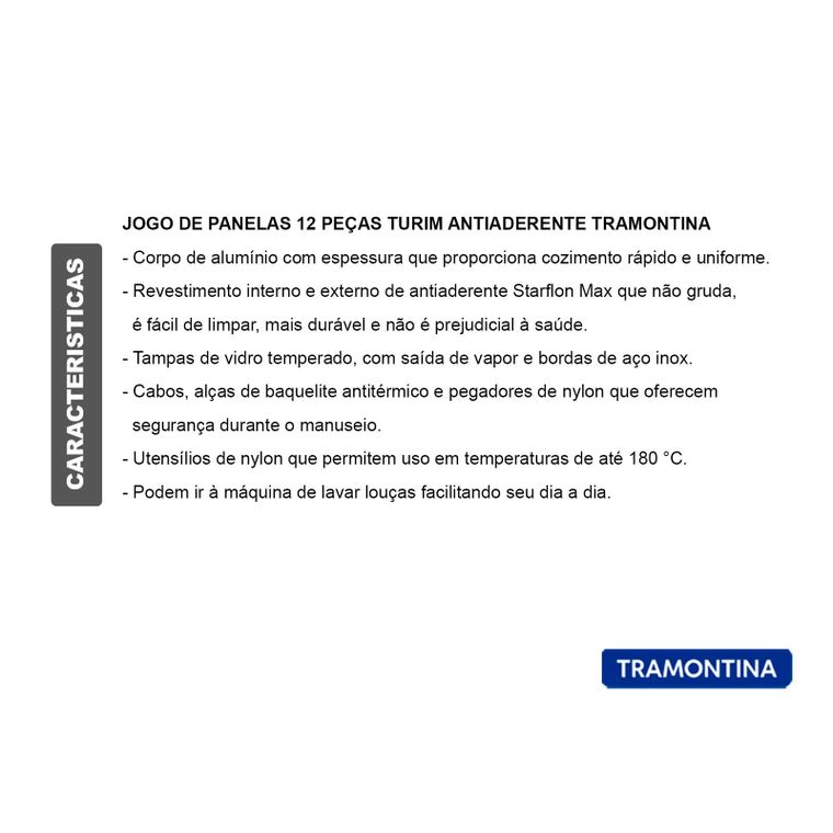 CONJUNTO PANELA ANTIADERENTE TRAMONTINA JOGO KIT 12P C TAMPA
