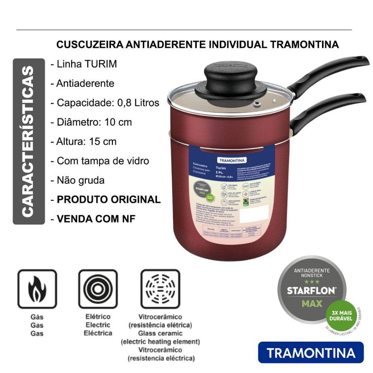 CUSCUZEIRA INDIVIDUAL TRAMONTINA ANTIADERENTE 10 CM 0,8L STARFLON MAX TURIM VERMELHA
