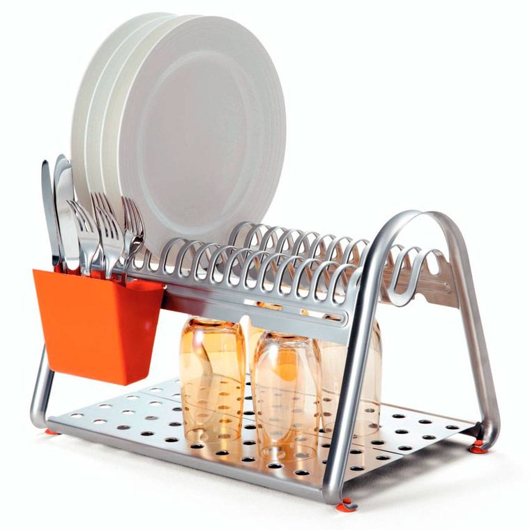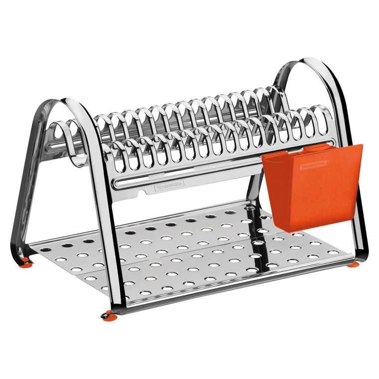 - 1 Escorredor de Louça Tramontina Ciclo em Aço Inox com Porta Talheres Laranja.