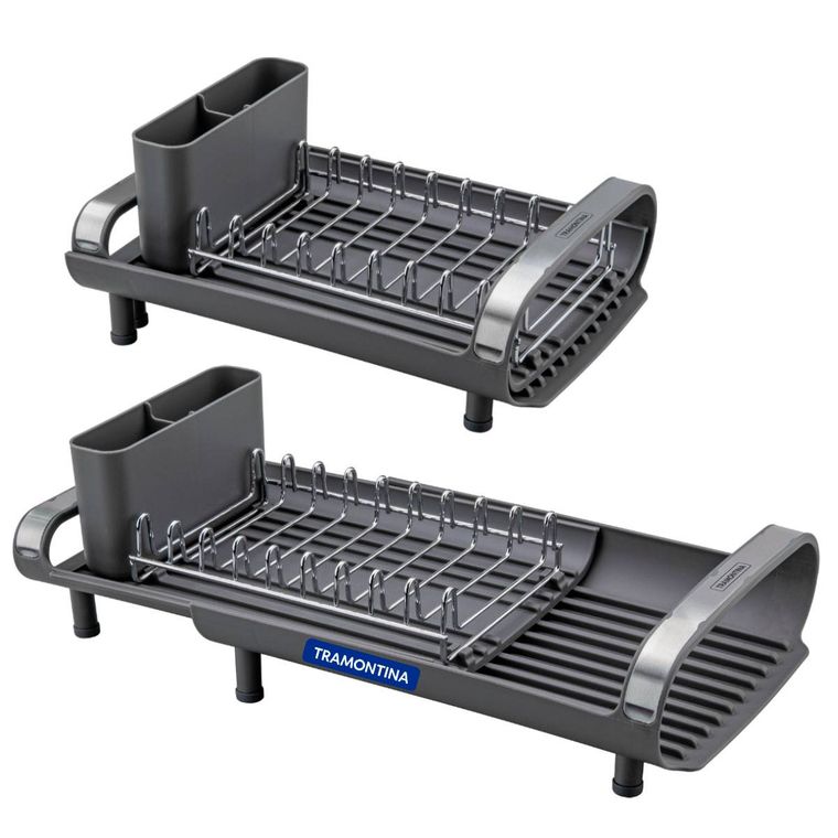 - 1 Escorredor de Louça Tramontina Plurale Compacto com Secador e Porta Talheres Grafite.