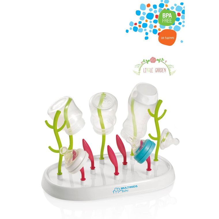 O Escorredor de Mamadeiras e Acessórios Little Garden da Multikids Baby é ideal para secar mamadeiras, bicos, copos, chupetas e acessórios de extratores de leite. Seu design exclusivo e funcional permite montar, desmontar, limpar e escorrer a água de maneira prática e fácil.