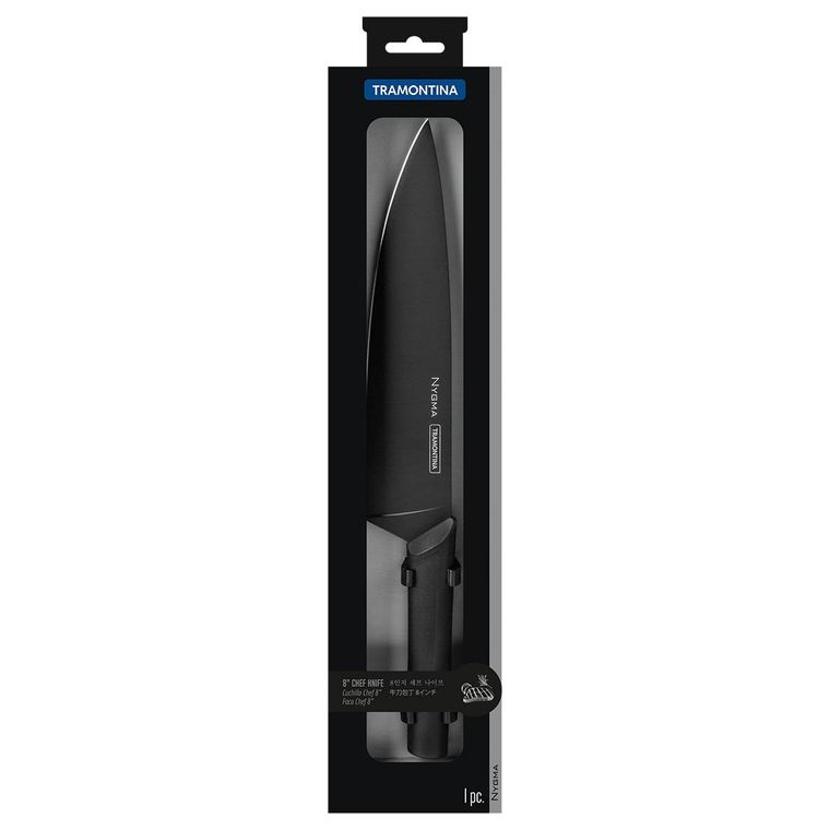 FACA CHEF TRAMONTINA NYGMA COM LÂMINA EM AÇO INOX E CABO DE POLIPROPILENO TEXTURIZADO PRETO 8"
