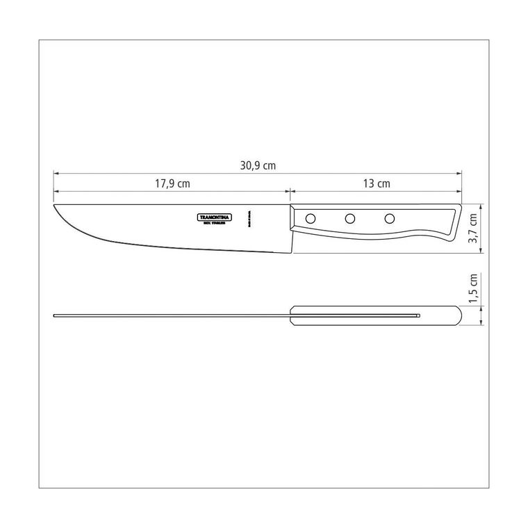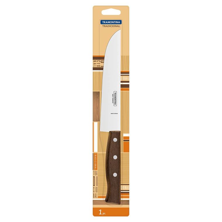 A faca para cozinha Tramontina Tradicional com lâmina em aço inox e cabo em madeira natural 7 polegadas é altamente versátil e garante o corte de diversos alimentos com maior precisão e funcionalidade. Produzida em aço inox, sua lâmina é rígida e estreita, possui maior durabilidade e excelente poder de corte. A qualidade e a beleza também se percebem em seu cabo, que é produzida em madeira natural com rebites de alumínio. Escolha Tramontina e equipe sua cozinha!