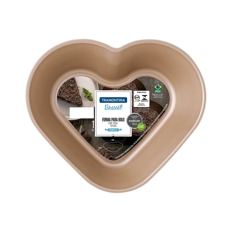 FORMA PARA BOLO CORAÇÃO TRAMONTINA BRASIL EM ALUMINIO COM REVESTIMENTO ANTIADERENTE STARFLON MAX VERMELHA 24 CM 1,1 L