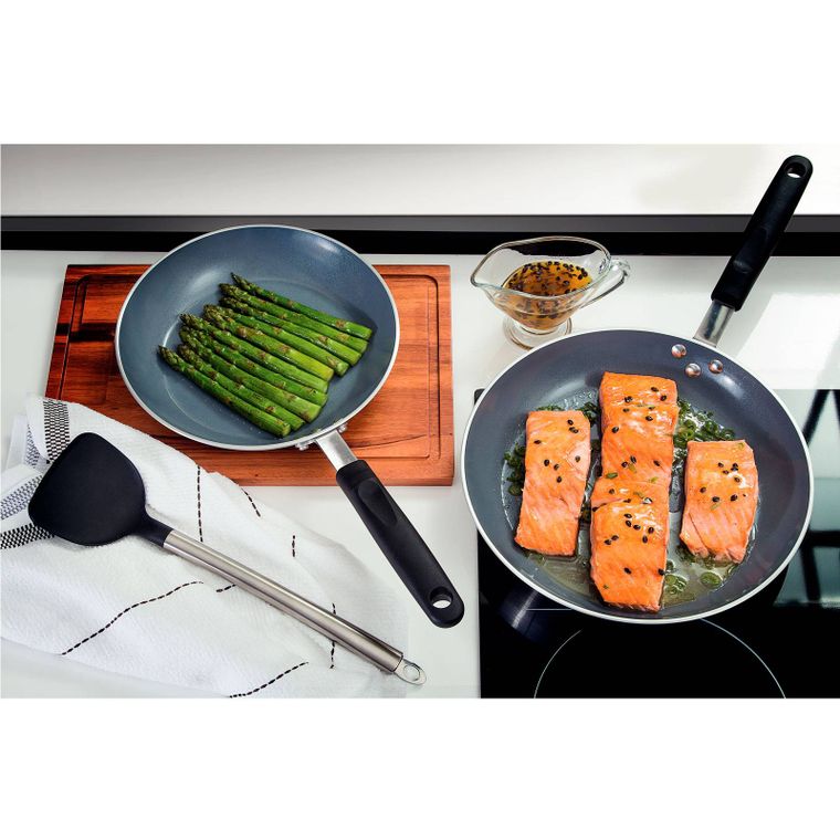 Toda cozinha, seja ela profissional ou não, precisa de panelas que atendam às necessidades de cada cozinheiro. Conte com toda qualidade da Frigideira Tramontina Profissional em Alumínio Acabamento Externo Lixado com Revestimento Interno Cerâmico Cabo Baquelite 30 cm de diâmetro 2,3 L você poderá realizar diferentes tipos de preparos com alta qualidade, ela irá possibilitar os mais diversos tipos de preparos, sendo ideal para quem cozinha profissionalmente ou por hobby, e que procura um produto de alta qualidade e performance. A peça, da linha de Frigideiras Profissionais Tramontina, é ideal para quem busca funcionalidade, praticidade e design. Produzida totalmente em alumínio com acabamento externo lixado e revestimento interno cerâmico, possui cabo de baquelite antitérmico, o que garante segurança durante o uso.