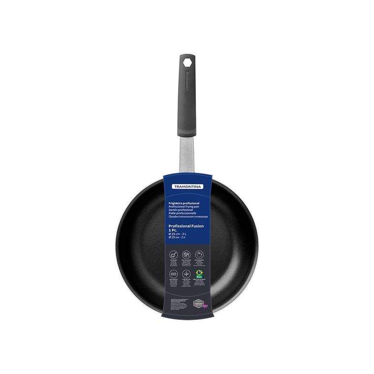 Se você busca equipamentos de alta qualidade e que garantam praticidade em sua rotina na cozinha, a Frigideira Profissional Tramontina Fusion 25 cm é perfeita para quem busca um utensílio de alto desempenho para preparos exigentes. Com ela, você prepara os alimentos de maneira rápida e uniforme, sem que eles grudem em sua superfície pois sua espessura tem 3,6 milímetros e seu revestimento interno é em antiaderente Starflon Premium.Externamente ela é lixada, 25 centímetros de diâmetro, 2 litros e tem cabo de aço inox com luva de silicone removível, que garante proteção contra o calor e maior segurança no manuseio. Uma frigideira profissional, ideal para cozinhas de restaurantes, cantinas e refeitórios!