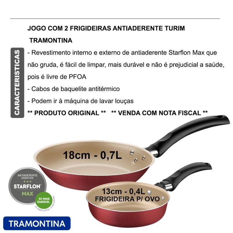 FRIGIDEIRAS ANTIADERENTE TRAMONTINA JOGO COM 2 PEÇAS