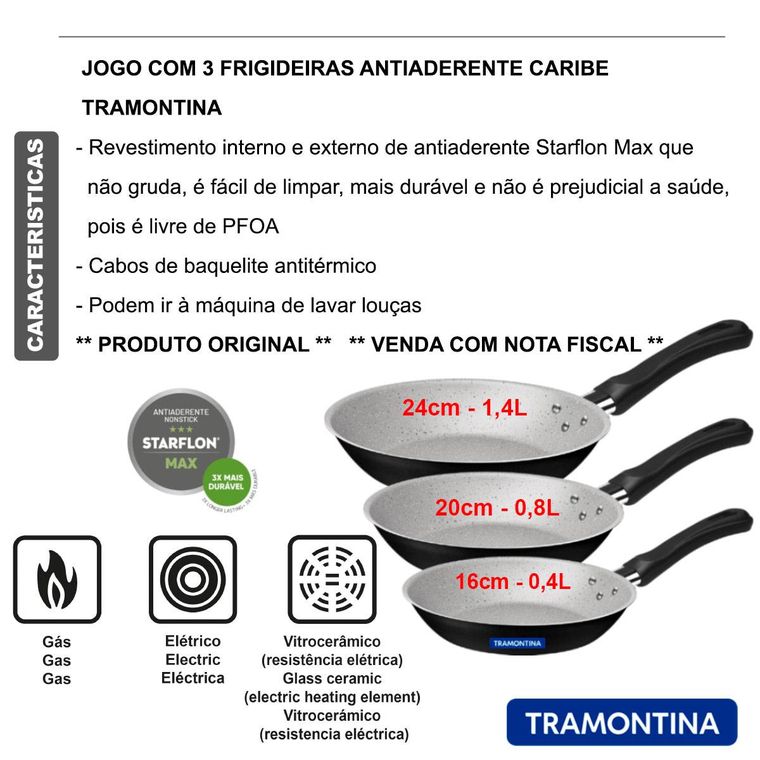 FRIGIDEIRAS ANTIADERENTE TRAMONTINA JOGO KIT COM 3 PEÇAS