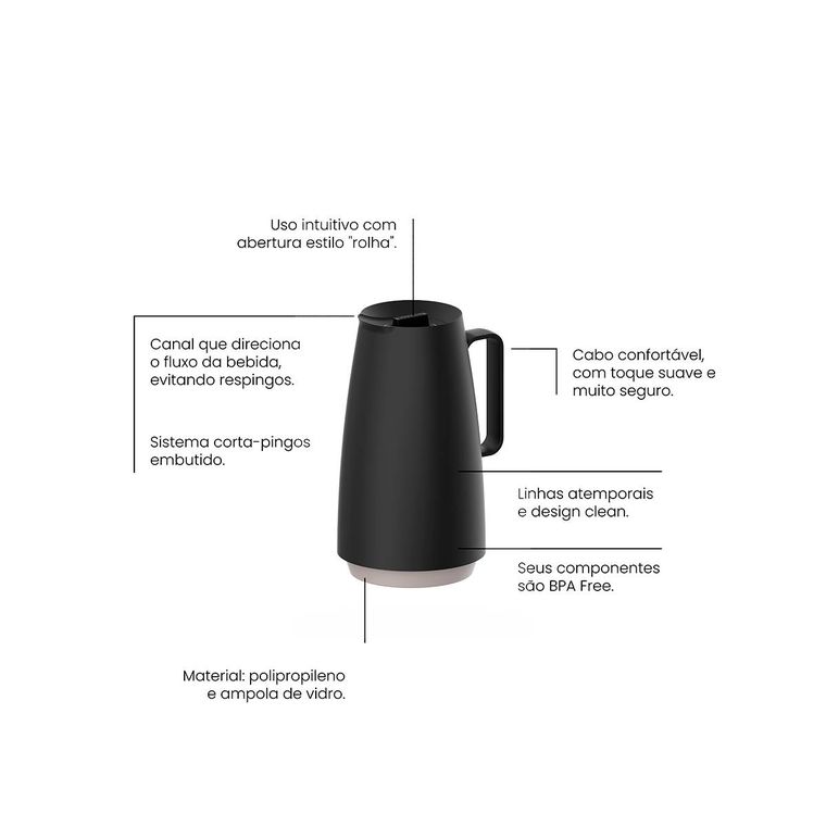 - Com linhas atemporais e design clean, o bule térmico da linha Exata combina com qualquer estilo e ambiente.