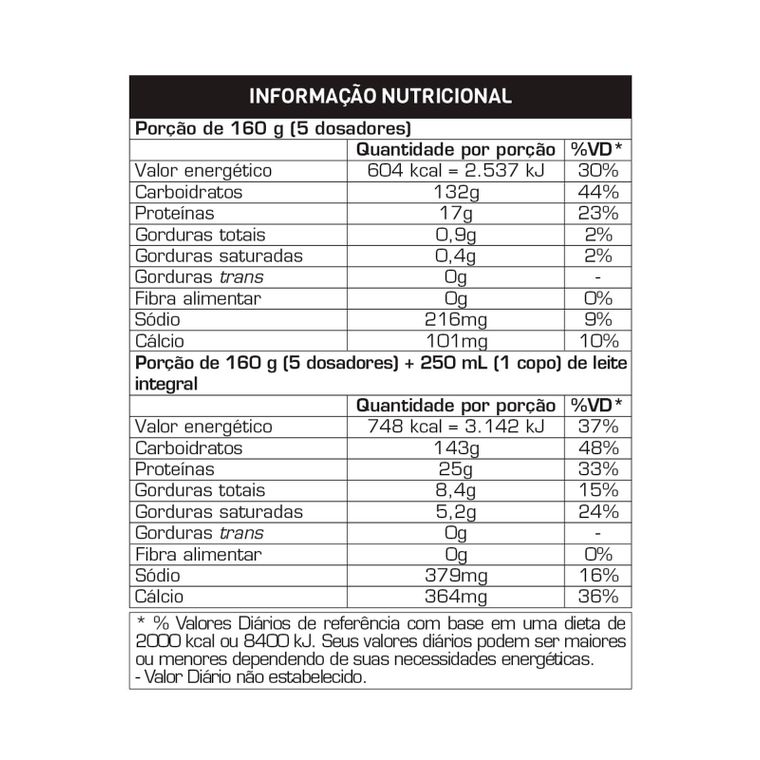 * Para quem está em processo de emagrecimento,o hipercalórico não é recomendado.*