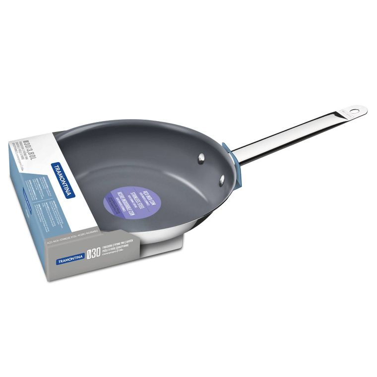 A Frigideira Tramontina Funda em Aço Inox Fundo Triplo Revestimento Interno Cerâmico Grafite possuí cabo, 30cm de diâmetro e capacidade de 3,8L, é ideal para quem adora cozinhar e pensa em sua saúde também.