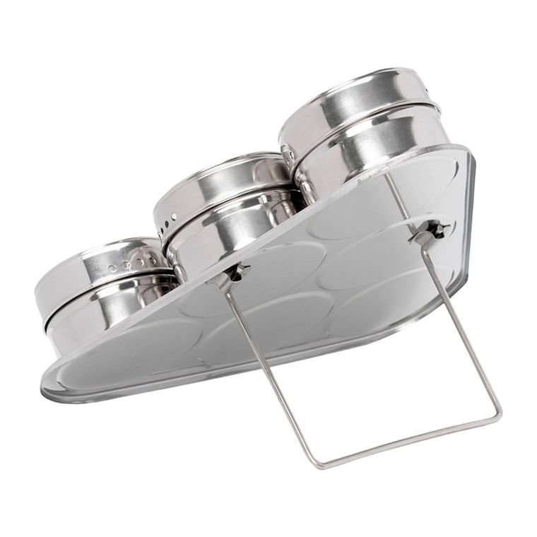 JOGO 6 PORTA CONDIMENTOS INOX COM SUPORTE TRIANGULAR PRATA MIMO STYLE
