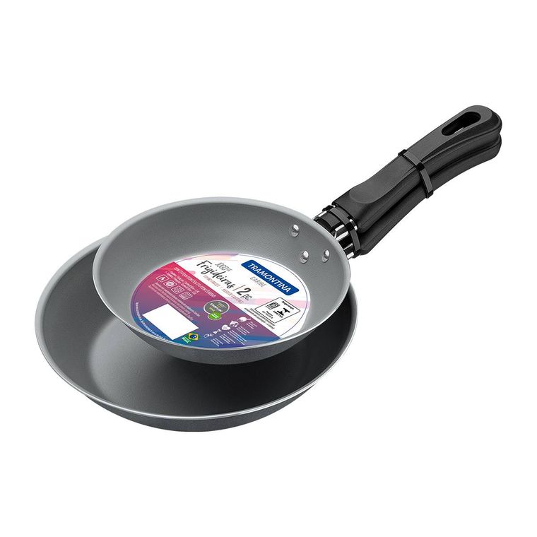 JOGO DE FRIGIDEIRAS TRAMONTINA CARIBE EM ALUMINIO COM REVESTIMENTO INTERNO E EXTERNO EM ANTIADERENTE STARFLON MAX CHUMBO 02 PEÇAS