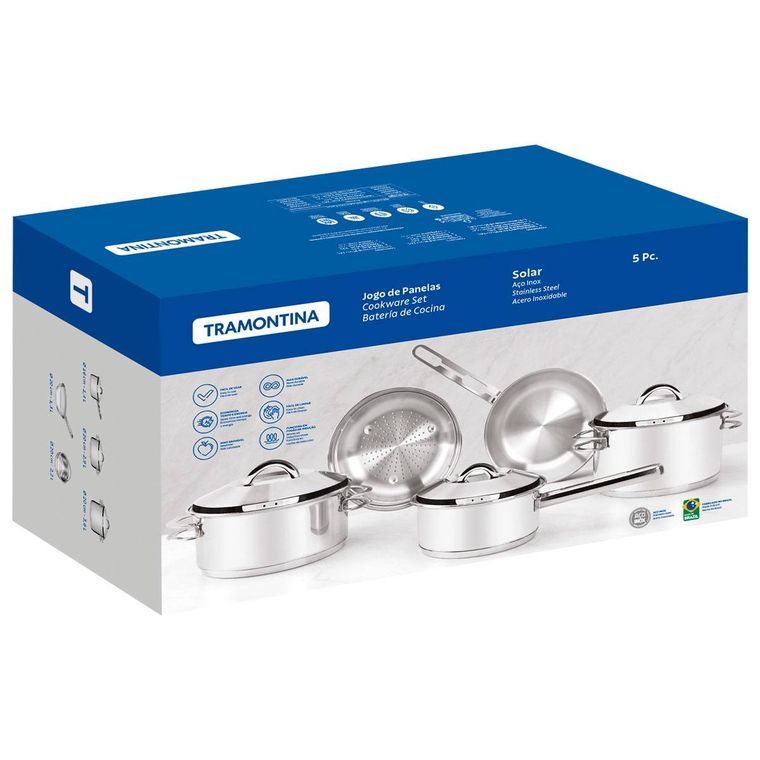 JOGO DE PANELAS TRAMONTINA FOGAO INDUÇÃO INOX 5 PEÇAS SOLAR
