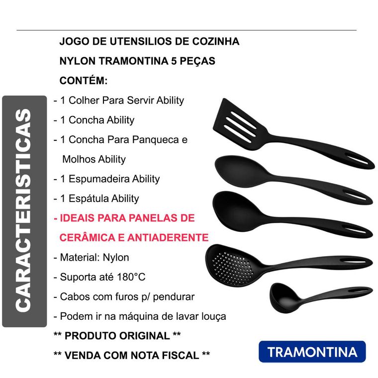 JOGO DE UTENSILIOS TRAMONTINA ABILITY EM NYLON 5 PEÇAS