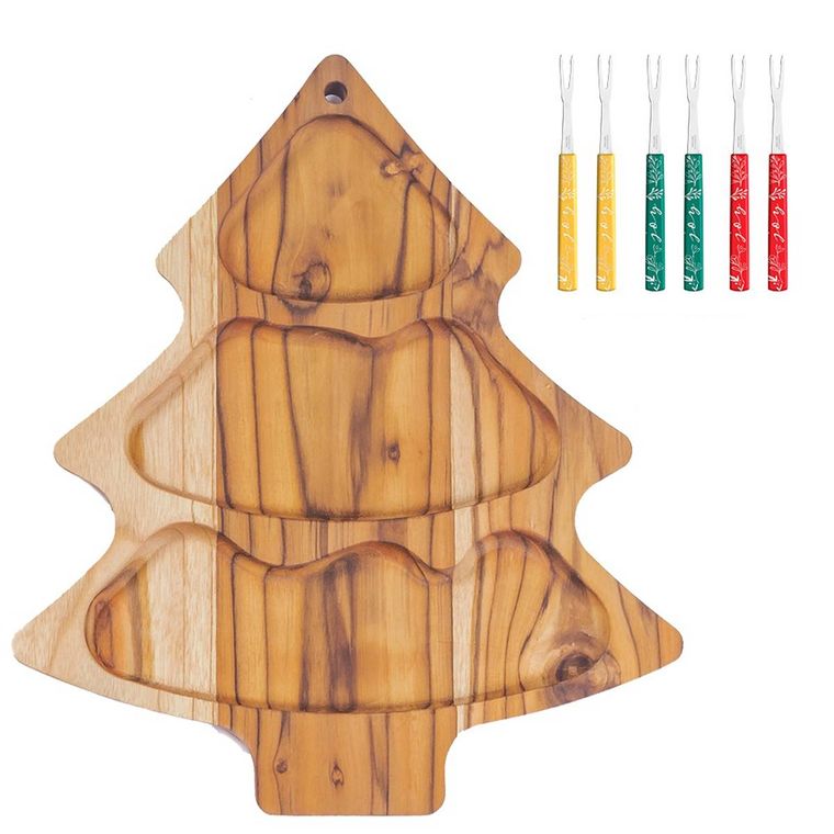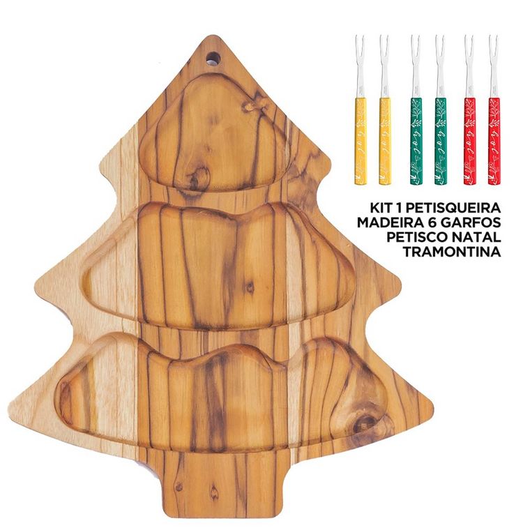 KIT 1 PETISQUEIRA MADEIRA 6 GARFOS PETISCO NATAL TRAMONTINA