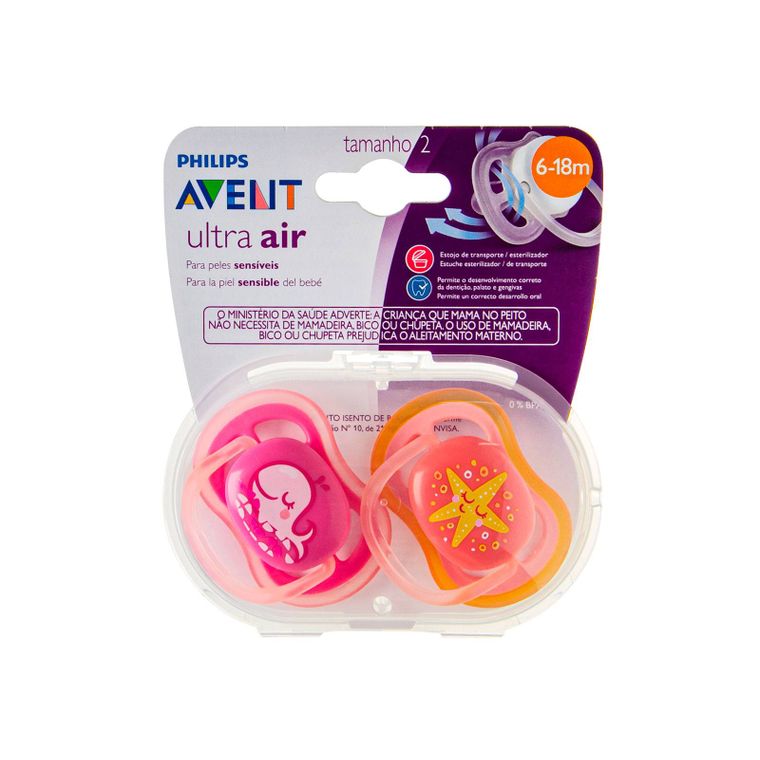 KIT 2 CHUPETAS AVENT MENINA ULTRA AIR DECORADA 6-18 MESES - PHILIPS AVENT