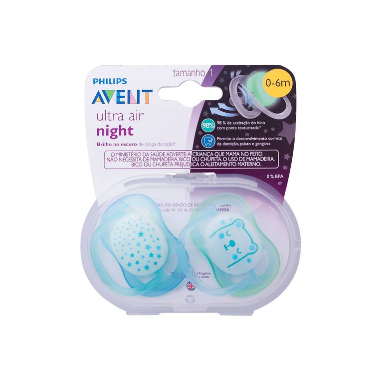 KIT 2 CHUPETAS AVENT ULTRA AIR NIGHT 0% BPA + ESTOJO - 0-6 MESES - MENINO - PHILIPS AVENT