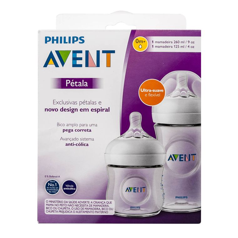 KIT 2 MAMADEIRA PHILIPS AVENT PETALA ORIGINAL 125ML E 260ML ANTICOLICA - TRANSP