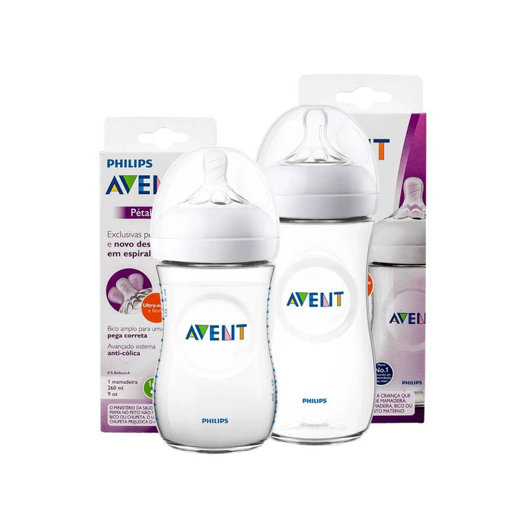 KIT 2 MAMADEIRAS AVENT PÉTALA ANTI-CÓLICA 260ml e 330ml - 0% BPA - TRANSP. - PHILIPS AVENT