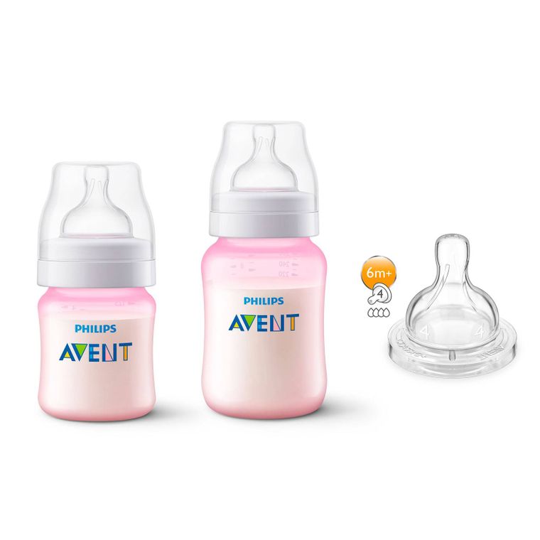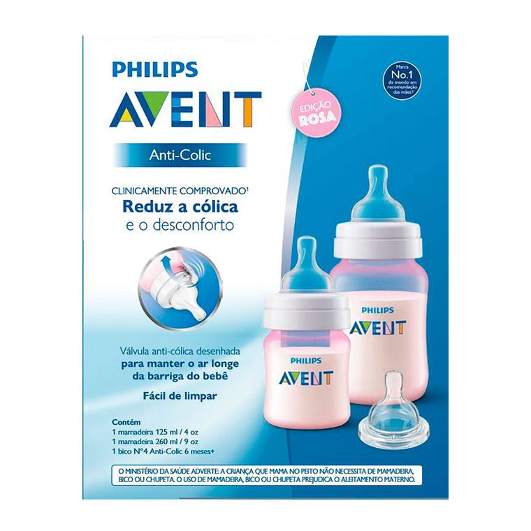 KIT 2 MAMADEIRAS CLÁSSICA ANTICÓLICA 125\/260ml ROSA + 1 BICO Nº 4 - PHILIPS AVENT