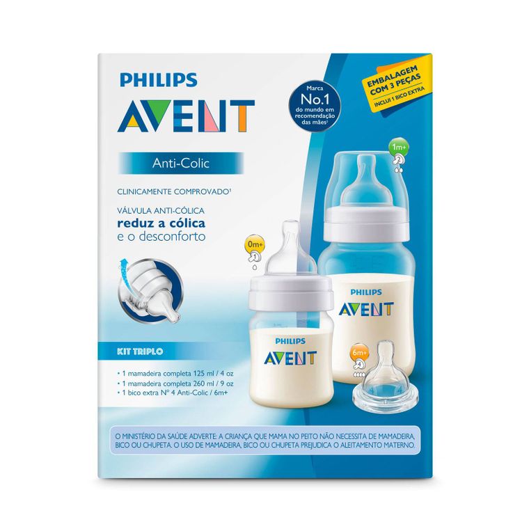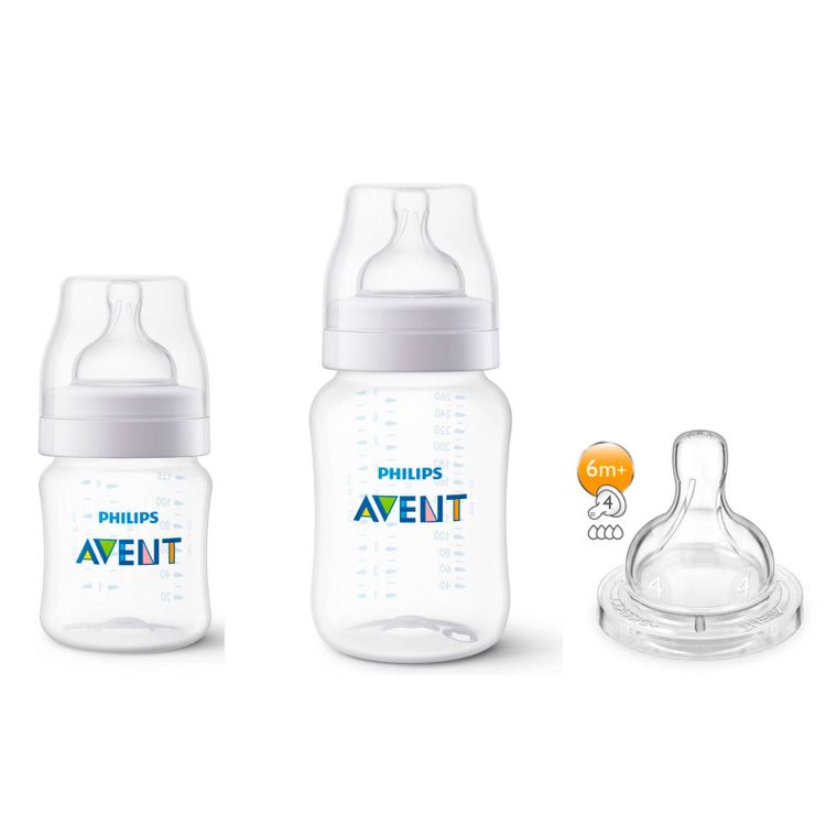KIT 2 MAMADEIRAS CLASSICA ANTICOLICA 125\/260ml TRANSP.+ 1 BICO Nº 4 - PHILIPS AVENT