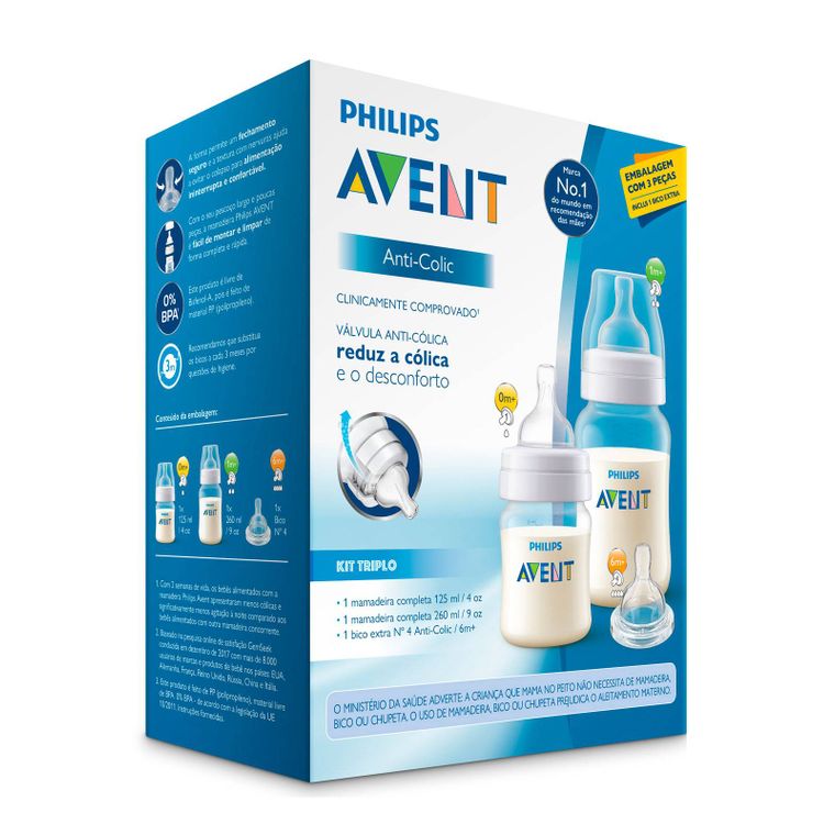 - Sistema clinicamente comprovado: Válvula dupla inovadora que reduz os desconfortos abdominais, ventilando ar para dentro da mamadeira, e não para a barriga do bebê.