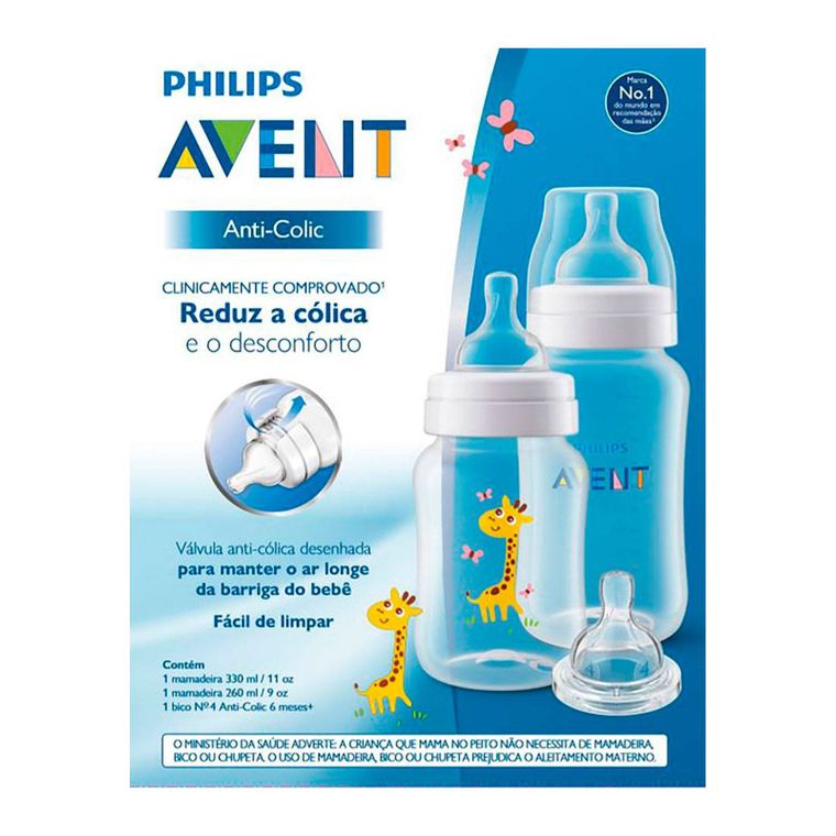 KIT 2 MAMADEIRAS CLÁSSICA ANTICÓLICA 260\/330ml GIRAFA+1 BICO Nº4-PHILIPS AVENT