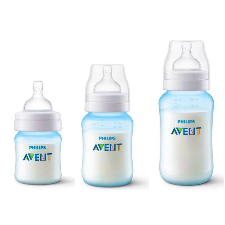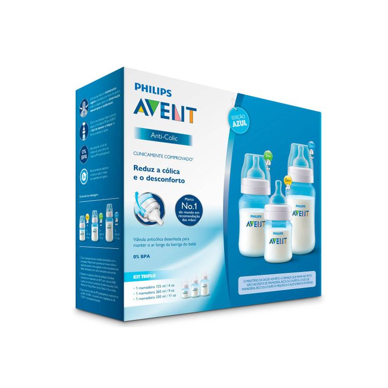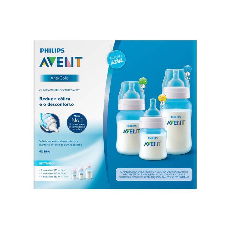 KIT 3 MAMADEIRAS AVENT CLASSICA ANTICOLICA 125ml 260ml e 330ml - 0% BPA - AZUL - PHILIPS AVENT