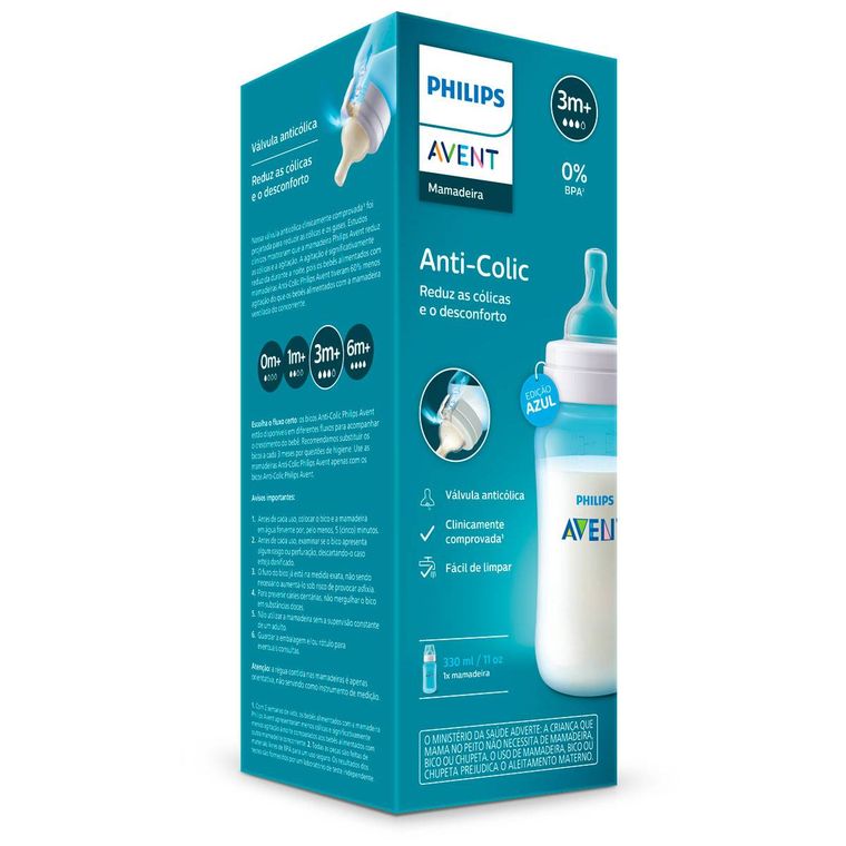 - Compatibilidade com a linha: A mamadeira Philips AVENT é compatível com grande parte da linha Philips AVENT. Recomendamos o uso da mamadeira Anti-Colic somente com os bicos Anti-Colic.
