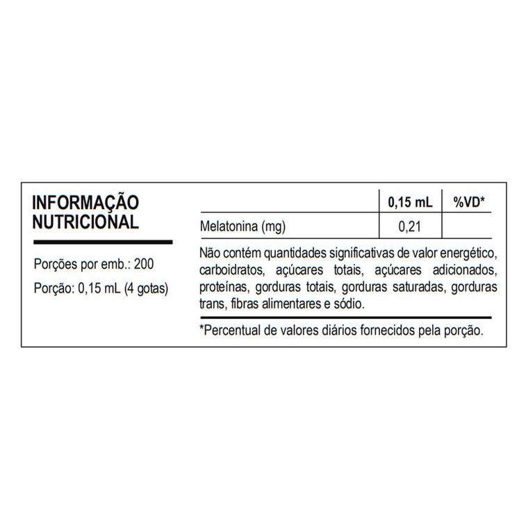 Água, melatonina, umectante glicerina, aromatizante, conservadores sorbato de potássio e benzoato de sódio e regulador de acidez ácido cítrico.