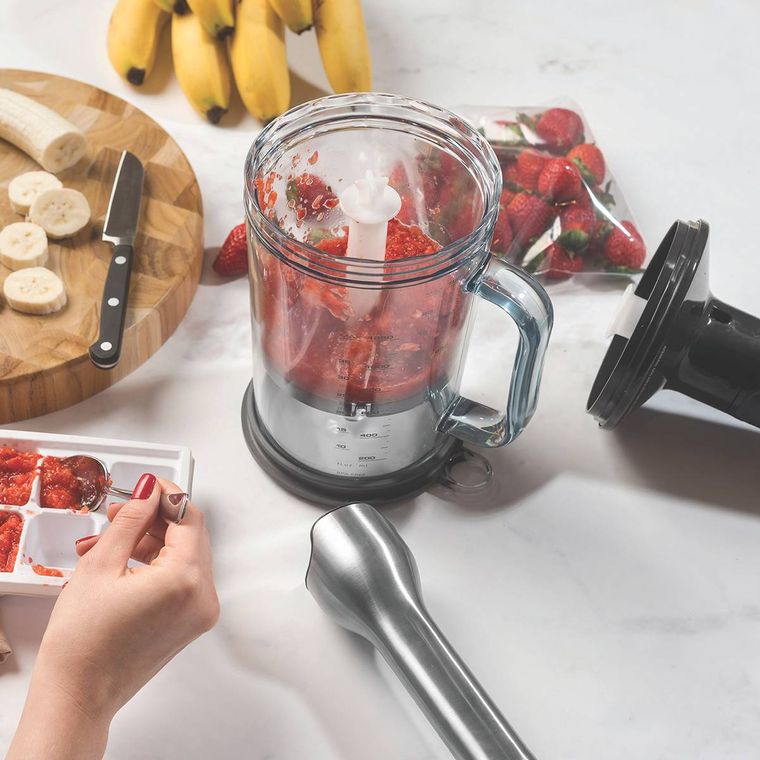 Para quem busca praticidade na cozinha, tornando os seus preparos ainda melhores, com mais controle e menos sujeira a melhor escolha é o Soft Mixer em Aço Inox com Copo 15 Velocidades 127 V da linha de Eletroportáteis Tramontina by Breville.O mixer conta com controle de velocidade variável, com 15 configurações de velocidade para bater e processar com precisão. Design ergonômico para facilitar o manuseio e reduzir os esforços durante o processamento. Haste de mistura extralonga de 24 cm para bater quantidades grandes em potes altos. A haste é produzida em aço inox para garantir durabilidade e uma limpeza fácil. Protetor de lâmina antirriscos evita que os potes e recipientes sejam riscados. Armazenagem compacta, o processador se encaixa dentro do copo para oferecer mais controle no processamento e conveniência ao armazenar. Além disso, conta com lâminas de aço inox para triturar gelo, copo de 1,25 L, processador de 750 ml e batedor de arame. A escolha ideal para fazer os mais diversos preparos, como misturar molhos e caldos.