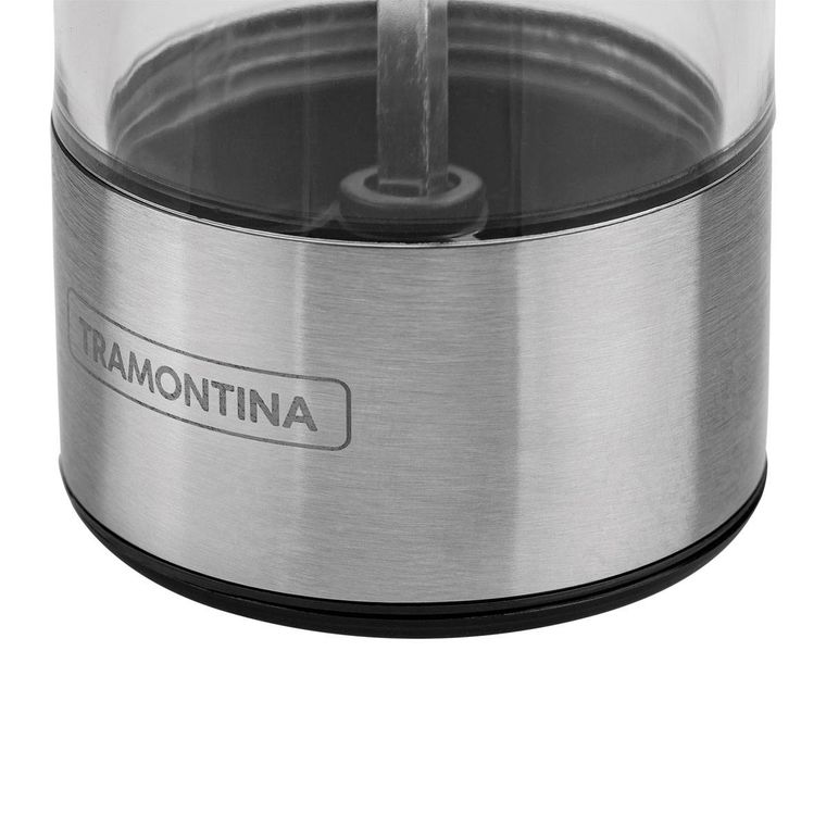 O Moedor para Sal ou Pimenta Tramontina em Aço Inox e Acrílico leva modernidade e estilo para sua cozinha em um objeto que não pode faltar na sua mesa. Elegante, possui design clean e arrojado, garantindo beleza e higiene aos momentos especiais. É produzido em aço inox e com compartimento em acrílico, além de ter tampa ABS. Os moedores em cerâmica são de alta resistência, garantindo uma performance sem igual na hora de moer grãos. Além disso, possui ajuste de moagem e regulador de tamanho de grão, para que seja ajustado conforme seu gosto. Possui capacidade de 175g para sal grosso e 75g para pimenta. Com bocal de saída na parte superior do moedor, evita que o pó da moagem fique sobre a mesa ou bancada.